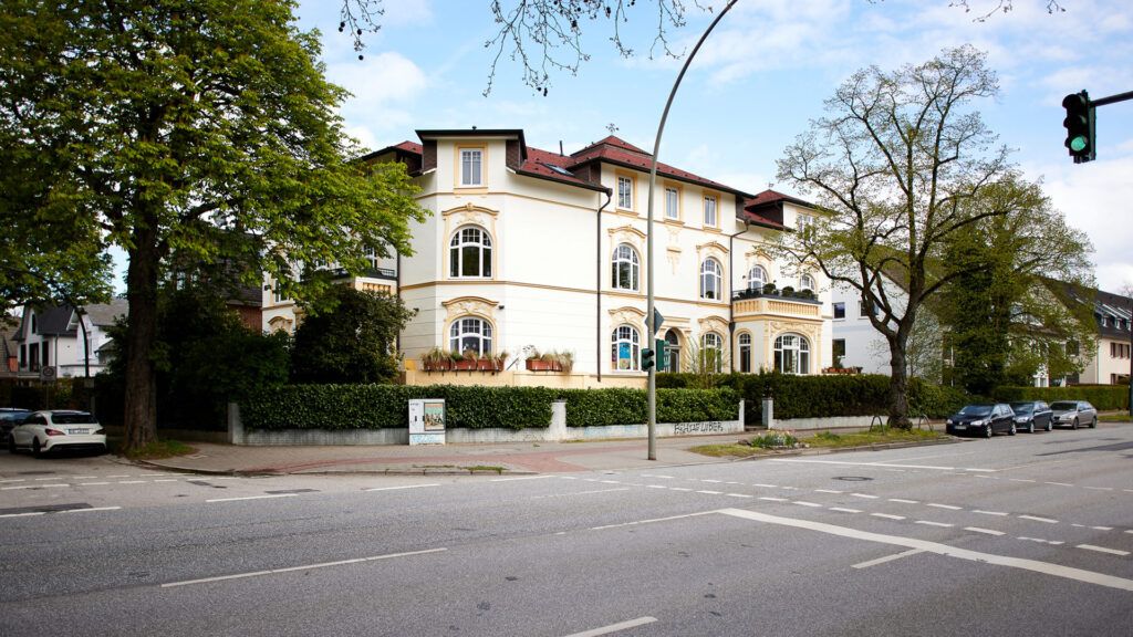Die Inhaber dieses Anwesens hatten einen ganz besonderen Wunsch. Das Gebäude sollte von einer goldenen Farbe geziert werden. Innerhalb von vier Monaten Bauzeit setzten wir eine umlaufende Fassadensanierung von 2000 m² sowie die Stucksanierung um.