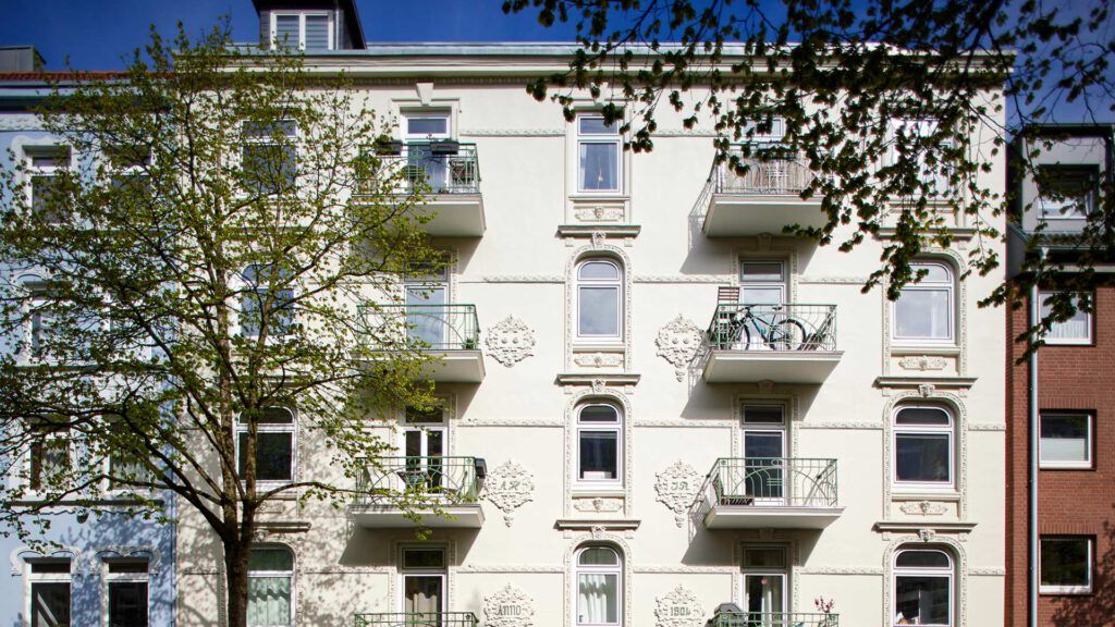 Besonderes Augenmerk wurde auf die Stuckelemente am Balkon gelegt, insbesondere auf die Neuanfertigung von Stuckleisten, um den historischen Charakter des Gebäudes zu bewahren und gleichzeitig eine frische Optik zu schaffen.